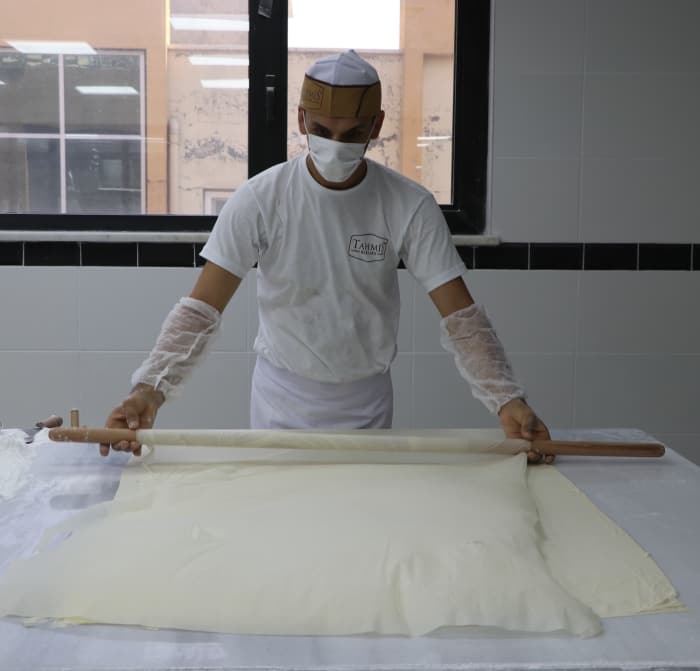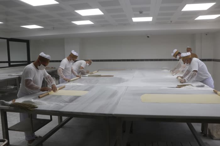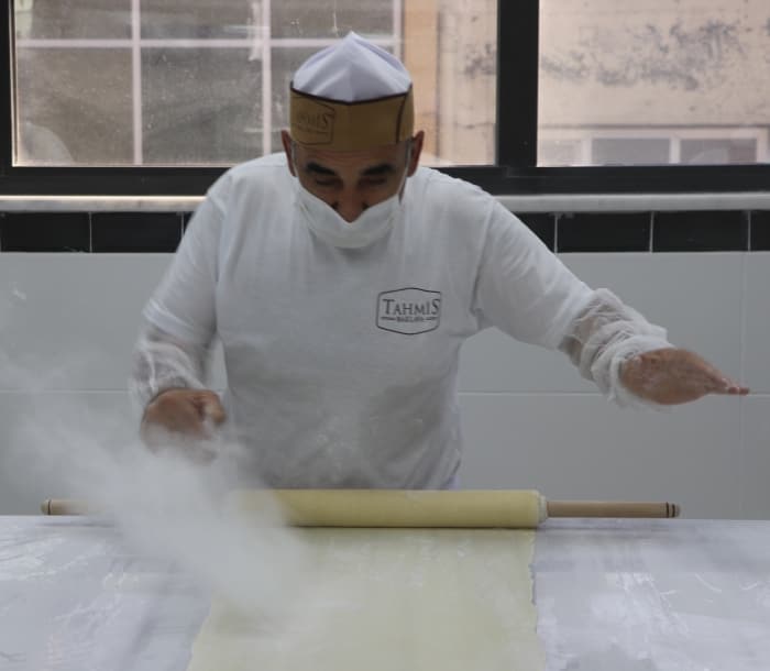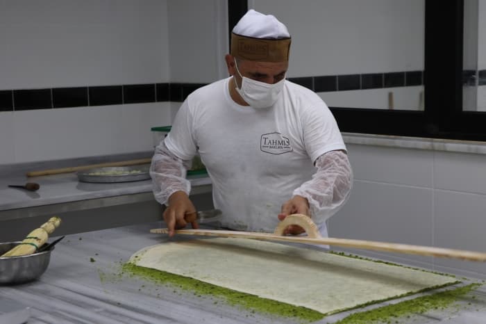 Aldıkları siparişleri zamanında yetiştirmek isteyen baklava ustaları, mesai saatlerini öne çekerek çalışma sürelerini uzattı.