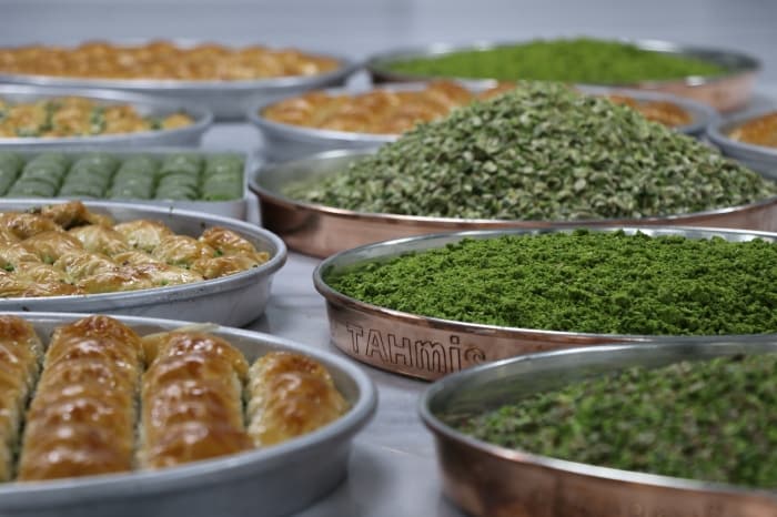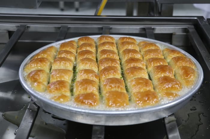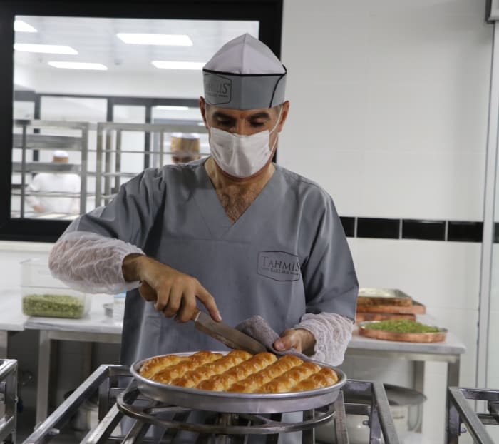 Kurban Bayramı'na sayılı günler kala siparişleri yetiştirmek için çabalayan Gaziantepli baklavacılar, yoğun mesai harcıyor.