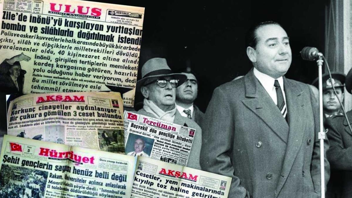 27 Mayıs darbesi sonrası başlatılan karalama kampanyalarıyla sınırları aştılar. Yassıada yargılamaları başladığında Demokrat Partililer hakkında tek tek karakter suikastı denediler. Karikatürle devam ettiler. O kadar ki Hürriyet Gazetesinde 14 Haziran 1960 günü yayınlanan karikatürde, büyük bir ahlaksızlığa imza atarak Celal Bayar ve Adnan Menderes köpek şeklinde çizildi. Darbeyi haklı göstermek isteyen vesayetçiler, her gün farklı bir yalan haberin gazetelerde yer almasını sağlamayı da ihmal etmediler. Korku filmlerini aratmayan senaryoları haberleştirdiler. "Hürriyet Şehidi gençlerimiz hakkında dün Milli Birlik Komitesi açıklama yaptı" başlıklı bir haberde, cesetlerin makinede kıyılıp toz haline getirildiğinin ihbar edildiği öne sürüldü. Bu haberin hemen ardından, cesetlerin bulunması için halktan yardım istendiği de belirtildi. Bu haberleri, "Buzhanelerden toplu cesetler çıktı", "Korkunç cinayetler aydınlanıyor: Bir çukura gömülen üç ceset çıktı" haberleri takip etti. Haberde, cesetlerin çoğunun "öldürülen talebeler"e ait olduğu ileri sürüldü. Ancak ortada bir cesedin olmadığı Milli Birlik Komitesi tarafından oluşturulan araştırma komisyonuna hiçbir ailenin çocuğunu bulmak için başvurmamasıyla ortaya çıktı. Tam bir skandal, tam bir ihanet.