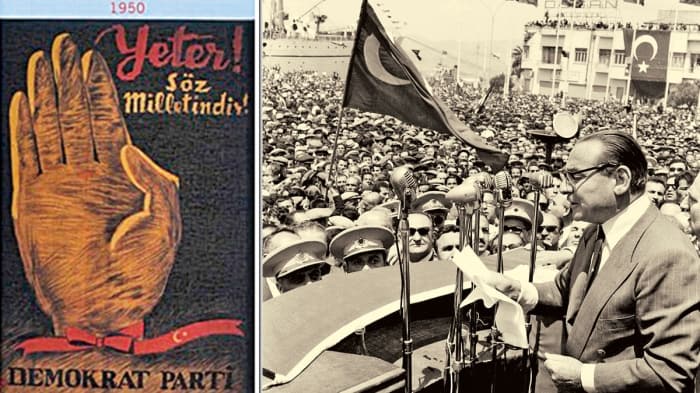 Hâkim teminatı olmaksızın, jandarma eşliğinde, açık oy ve gizli sayımla yapılan 1946 seçimleri sayılmazsa, 14 Mayıs 1950’deki DP’nin seçim kampanyası, esas olarak iki temel üzerine inşa edilmişti. Bunlardan birisi CHP’nin din üzerindeki baskısıyla ilgiliydi. DP, din özgürlüğünü güvence altına alacağına söz verdi. İkincisi ise ekonomi üstündeki ezici devlet denetimine ilişkindi. DP, ekonomiye devlet müdahalesini azaltacağını, devlete ait işletmeleri özel kesime aktaracağını, köylünün emeğinin tam karşılığını ödeyeceğini; tutucu ve bürokratik devlet anlayışının tasfiye edileceğini, özel sektörün destekleneceğini, Batı demokrasilerinin örnek alınacağını, siyasî rejimin demokratik bir zihniyetle yeniden düzenleneceğini, milletin esas alınacağı ve sadece millete mal olmuş devrimlerin korunarak son sözün millete ait olacağını vurgulamıştır.