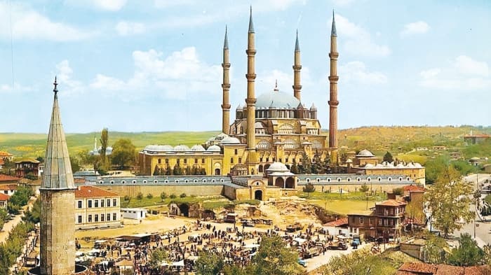 Önemli coğrafi konumu dolayısıyla erken dönemlerden itibaren bir yerleşim merkezi olan şehir, II. yüzyılda Roma İmparatoru Hadrianus (117-138) tarafından yeniden kurulunca onun adına izâfeten Hadrianopolis adını aldı. Biz ona Hadrianopolis’ten bozma Edirne dedik. 1361, yılında Orhan Gazi devrinde Osmanlıların eline geçti. Bundan sonra şehir, Rumeli’nin fethi için bir harekât üssü olarak kullanılmış, İstanbul’un kuşatma hazırlıkları buradan yapılmış ve İstanbul üzerine buradan yürünmüştür. II. Murad devrinde şehrin gelişmesi hız kazandı. Fatih Sultan Mehmet burada dünyaya geldi. II. Murad burada oğulları için muhteşem sünnet düğünleri tertip ettiği gibi Rumeli’deki faaliyetlerini de buradan yürüttü, elçileri yine bu şehirde kabul etti. İstanbul’un fethinden sonra da Edirne’nin önemi uzun süre devam etti. Nitekim II. Mehmed fethin ardından Balkanlar’daki faaliyetleri için burayı hareket üssü olarak kullanmış, ayrıca 1475 ilkbaharında oğulları Bayezid ve Mustafa’nın bir ay süren sünnet düğünlerini Ada çayırı (Ada içi) denilen Sarây-ı Cedîd bahçe ve koruluklarında yaptırmış, elçileri burada kabul etmişti.