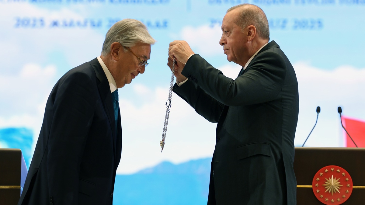 Konuşmaların ardından Erdoğan, Tokayev'e Türkiye Cumhuriyeti Devlet Nişanı tevcih etti.