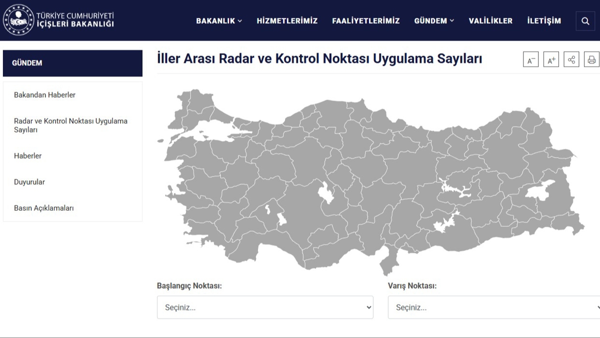 "https://www.icisleri.gov.tr/iller-arasi-radar-ve-kontrol-noktasi-uygulama-sayilari" internet adresinden erişilebilen bu sistemle, sürücülerin denetimlerden haberdar olarak dikkatli olmaları hedefleniyor.