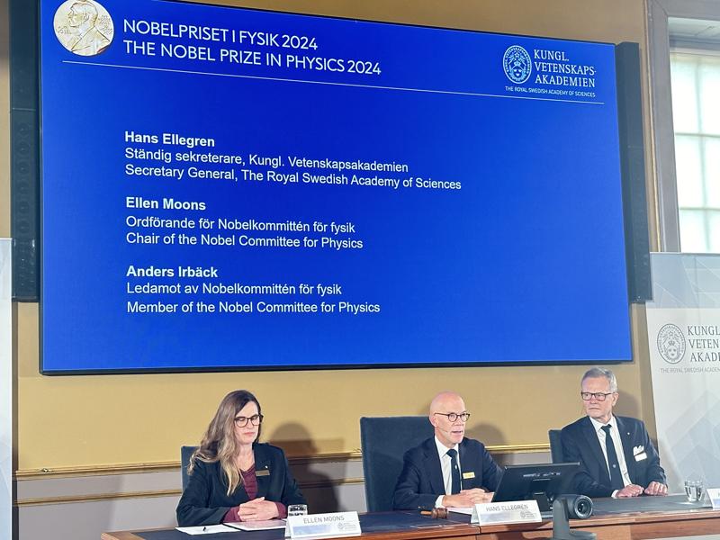 İsveç Kraliyet Bilimler Akademisi'nde düzenlenen basın toplantısında, 2024 Nobel Fizik Ödülü'nün sahipleri açıklandı.