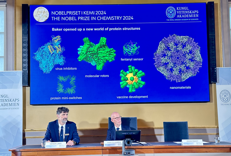 İsveç Kraliyet Bilimler Akademisi'nde düzenlenen basın toplantısında, 2024 Nobel Kimya Ödülü'nün sahipleri açıklandı.