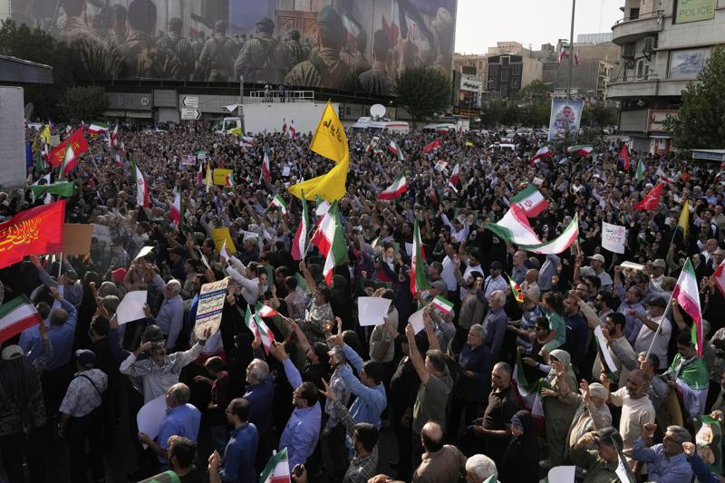 İnkılap Meydanı'nda toplumun birçok kesiminden İranlının katıldığı gösterilerde kalabalık gruplar, ellerinde İran bayraklarıyla ABD ve İsrail'e öfkelerini dile getirdi.
