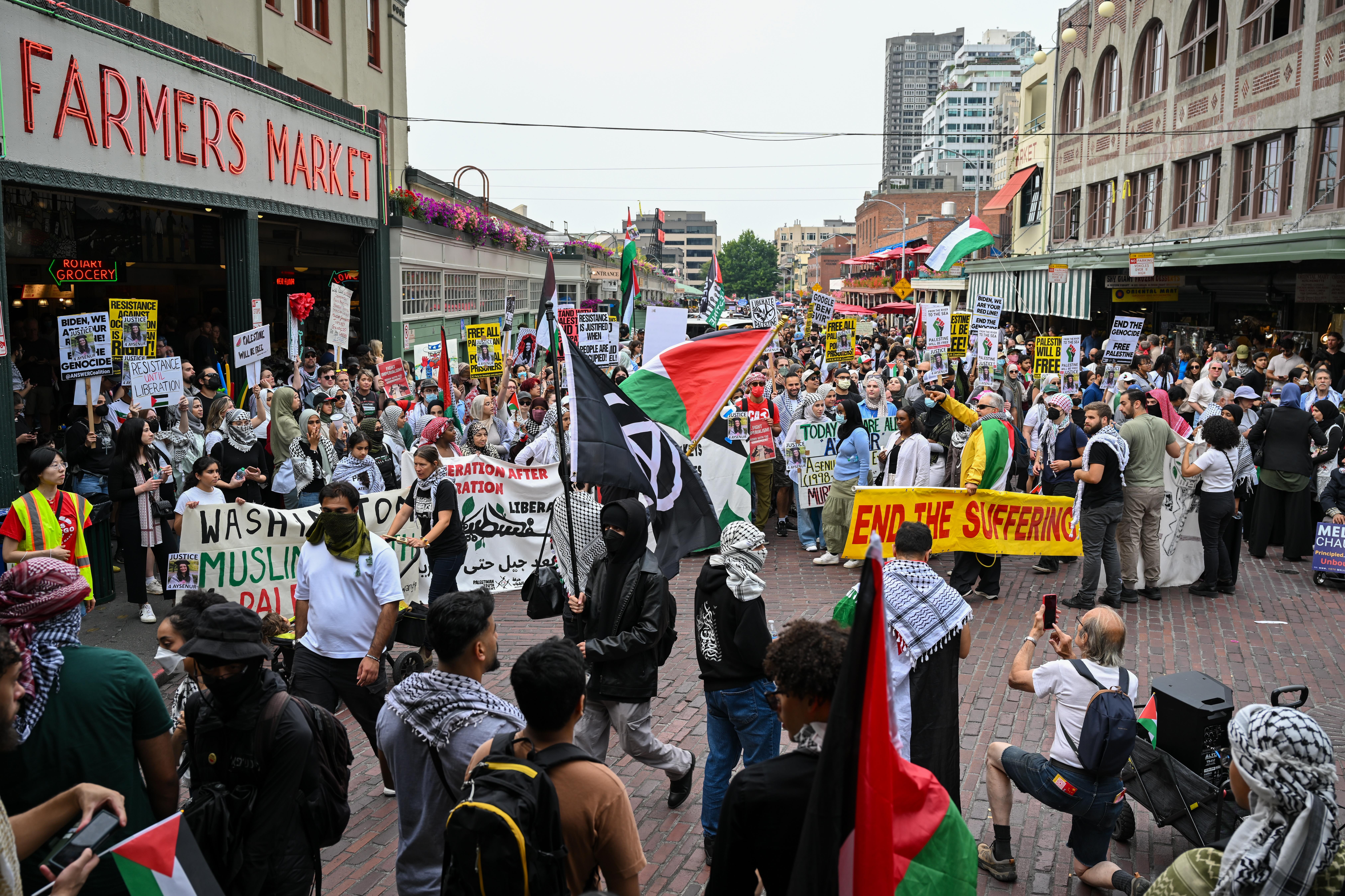 Washington eyaletinin Seattle kentindeki Westlake Park'ta düzenlenen gösteriye siyasetçiler, aktivistler ve öğrencilerden oluşan yüzlerce kişi katıldı.