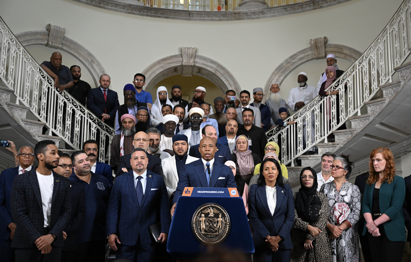 Adams, çeşitli cami dernekleri ve Müslüman vakıf temsilcilerinin hazır bulunduğu toplantıda, katılımcılara, "New York'ta inancınızı yaşamakta özgürsünüz. Gururluyum, sonunda bugün bunu gerçekleştiriyoruz." dedi.