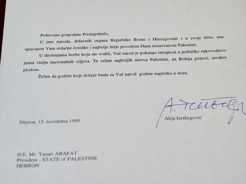 Aliya İzetbegoviç'in Filistin davasının unutulmaz ismi eski Filistin Devlet Başkanı Yasir Arafat'a yazdığı ve Bosna Hersek Devlet Arşivi'nde bulunan mektubuna ilk kez AA ulaştı.