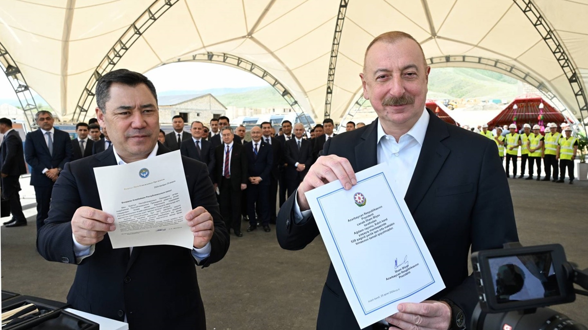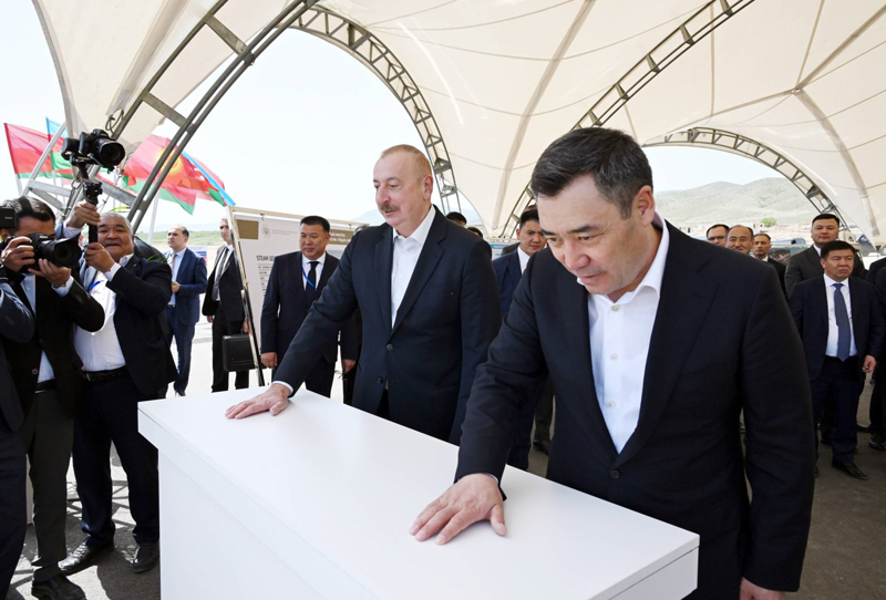 Ağdam'ın Hıdırlı köyüne geçen Aliyev ve Caparov, burada Kırgızistan tarafından inşa edilecek okulun temelini attı.