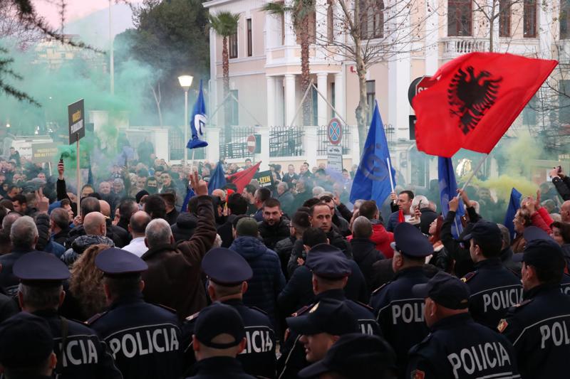 Arnavutluk'ta protestolar, "muhalefet eylemde" sloganıyla muhalefet milletvekillerinin çağrısıyla başkent Tiran'daki meclis binası önünde yapıldı.