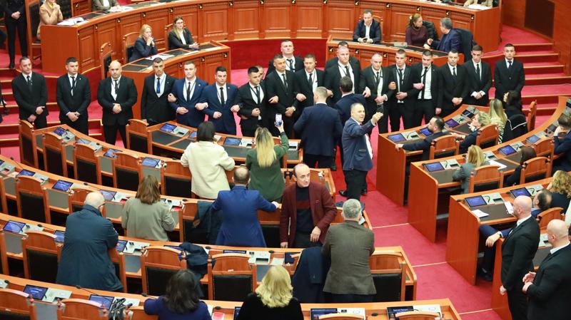 Muhalefet milletvekilleri bazı gündem konularının görüşülmesi öngörülen meclis oturumunu engellerken, yaşanan gerilim nedeniyle oturum 16 dakika sürdü. Oturum daha sonra Meclis Başkanı Lindita Nikolla tarafından yarıda kesildi.