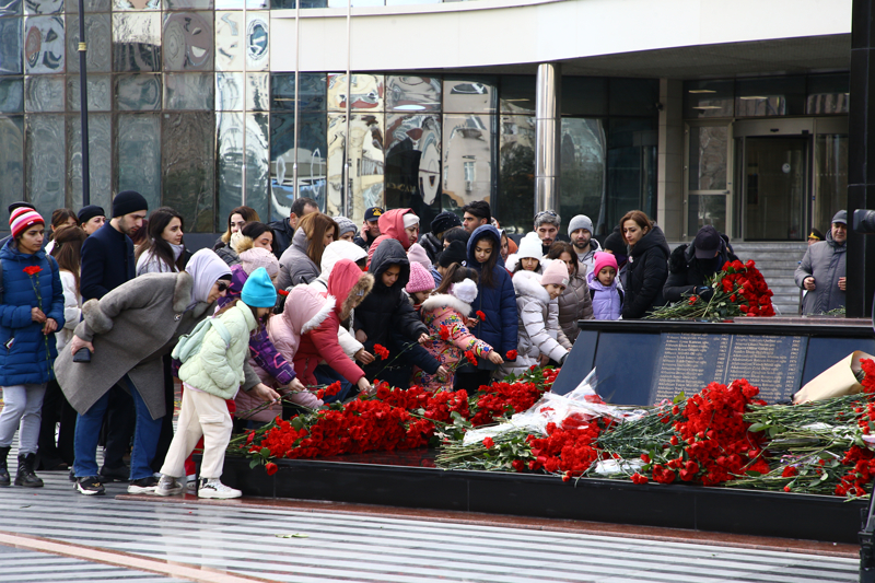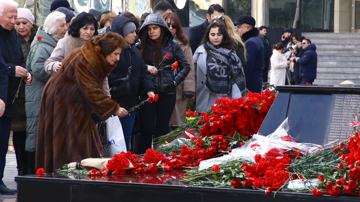 Azerbaycanlılar, Ermenilerin Hocalı'da katlettiği 613 kişiyi anmak için Bakü'deki Ana Feryadı Anıtı'na akın etti.