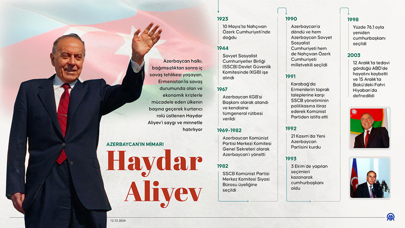 Sovyetler Birliği döneminde üst düzey görevlerde bulunan Haydar Aliyev, bağımsızlıktan sonra krizlerle mücadele eden Azerbaycan'ın başına geçerek kurtarıcı rolü üstlendi.