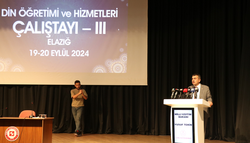 Çeşitli temaslarda bulunmak üzere Elazığ'a gelen Bakan Tekin, Fırat Üniversitesi Atatürk Kültür Merkezi'nde üçüncüsü düzenlenen "Din Eğitimi ve Hizmetleri Çalıştayı"na katıldı.