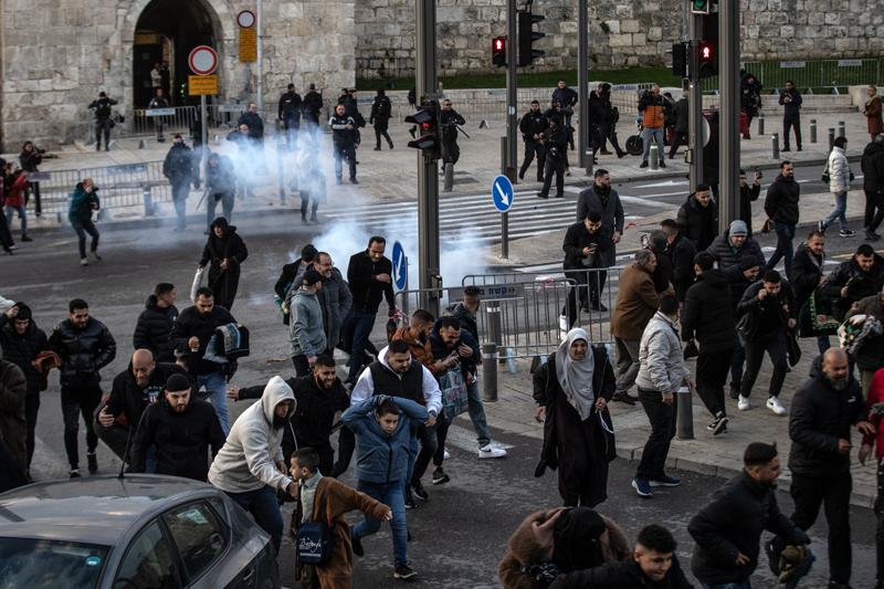 Selahaddin Caddesi'nde toplanan ve Sahire Kapısı'ndan Eski Şehir'e girerek Mescid-i Aksa'ya yürümek isteyen Filistinlilere İsrail polisi müdahale etti.