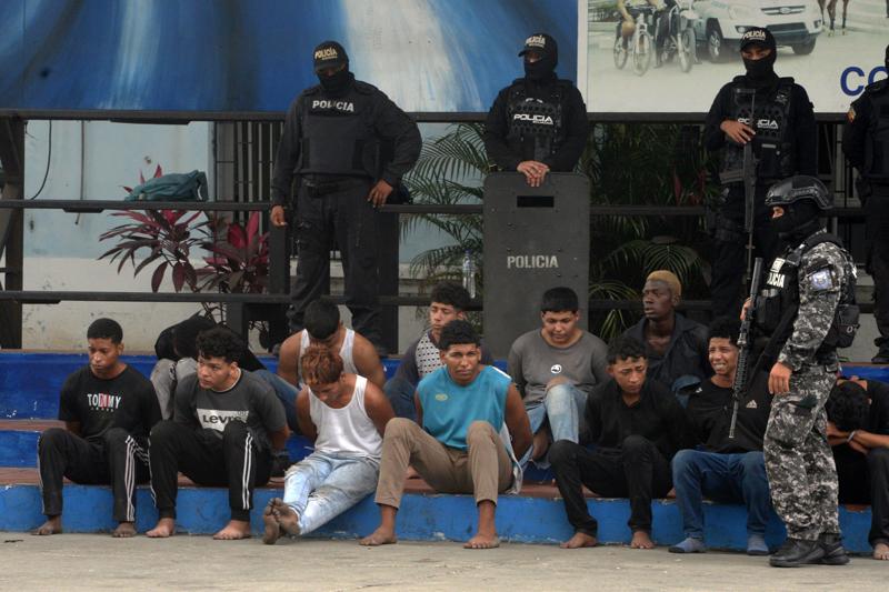 Ekvador polisi, silahlı gruba üye kişileri savcılığa teslim etmeden önce 8'inci bölge komutanlığında ifadelerini aldı.