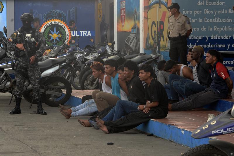 Ekvador polisi, silahlı gruba üye kişileri savcılığa teslim etmeden önce 8'inci bölge komutanlığında ifadelerini aldı.