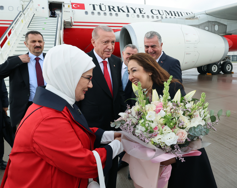 Cumhurbaşkanı Erdoğan ile eşi Emine Erdoğan, Cumhurbaşkanı Dış Politika ve Güvenlik Başdanışmanı Büyükelçi Akif Çağatay Kılıç ve Cumhurbaşkanlığı İletişim Başkan Yardımcısı Çağatay Özdemir de Berlin'e vardı.