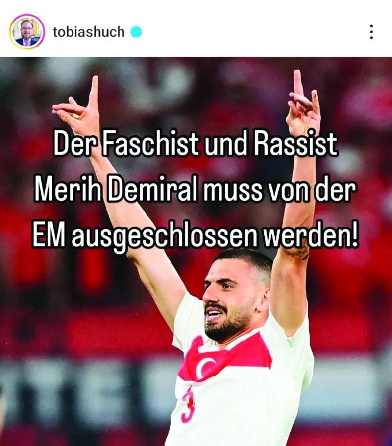 Maçın ardından PKK'ya yakın kişi ve derneklerin sosyal medya hesaplarından aynı anda, "Faşist ve ırkçı Merih Demiral Avrupa Şampiyonası'ndan men edilmeli" paylaşımını dolaşıma soktu.