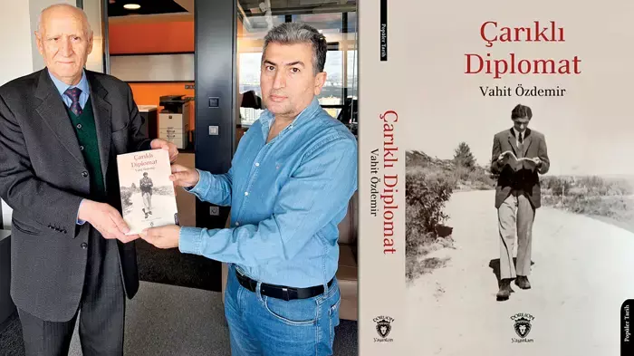 Emekli diplomat Vahit Özdemir, Akşam Ankara Haber Müdürü Lütfi Kaplan'a imzalı kitap hediye etti.
