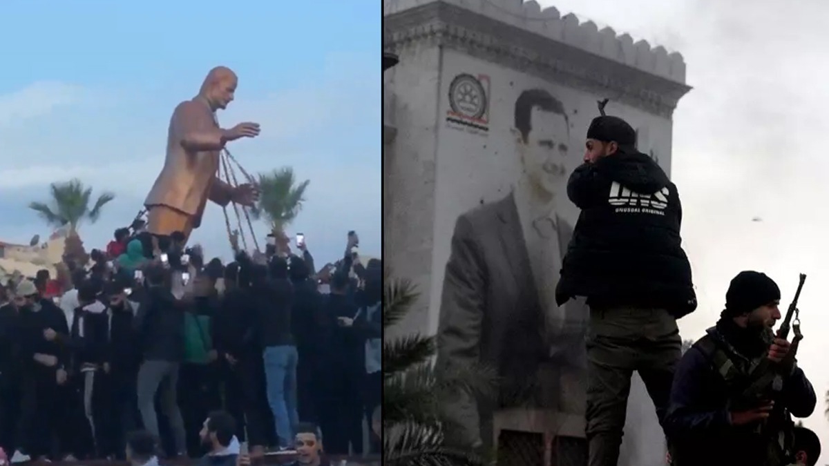 Başkent Şam'dan Esed ailesinin memleketi Lazkiye'ye, Halep ve Hama'dan diğer pek çok kentte rejimin sembolü olan tüm simgeler indiriliyor.