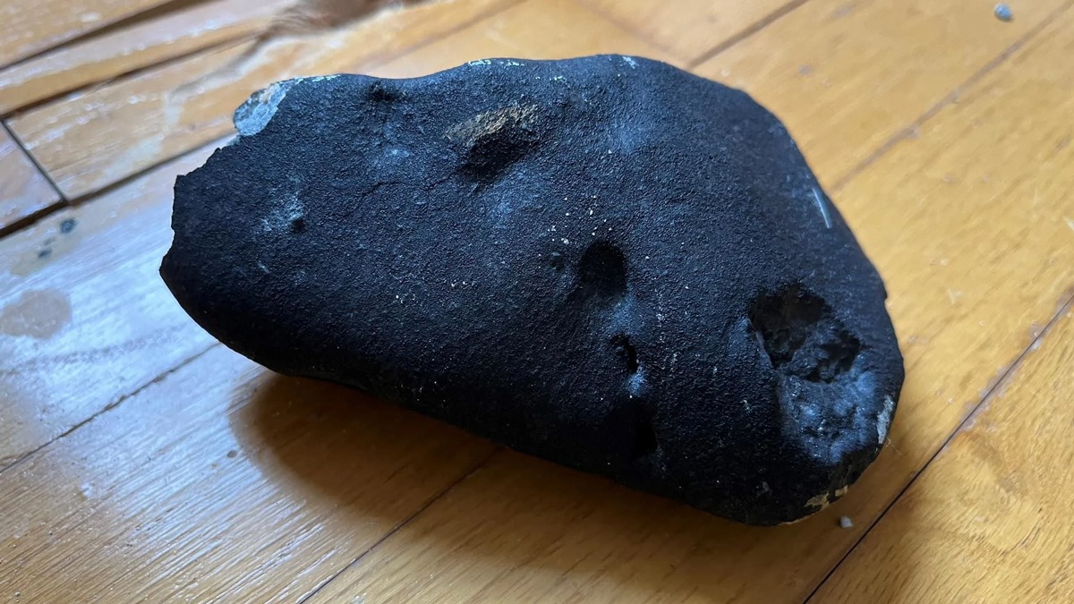 Eyalete bağlı Hopewell kasabasındaki evin çatısında delik açıldığını ve cismin zemine düştüğünü kaydeden aile, patates büyüklüğündeki siyah cismin "sıcak" olduğunu belirtti.