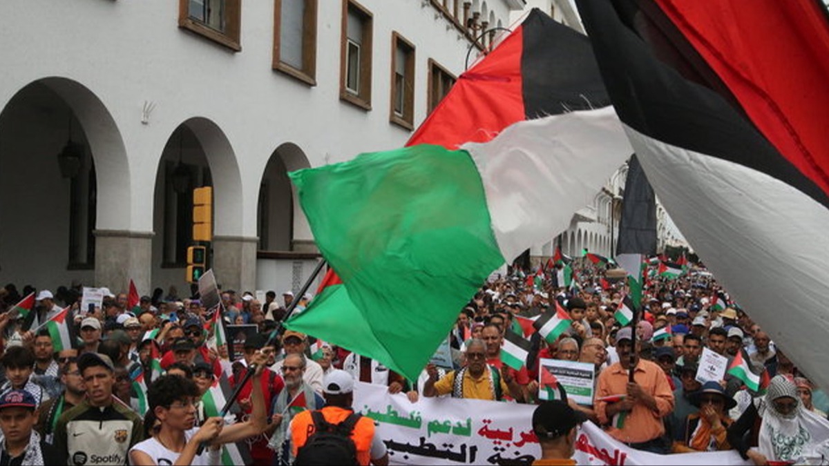 Göstericiler, Fas makamlarını Filistin halkını destekleyen pozisyon almaya ve İsrail'le normalleşme anlaşmasından geri adım atmaya çağırdı.