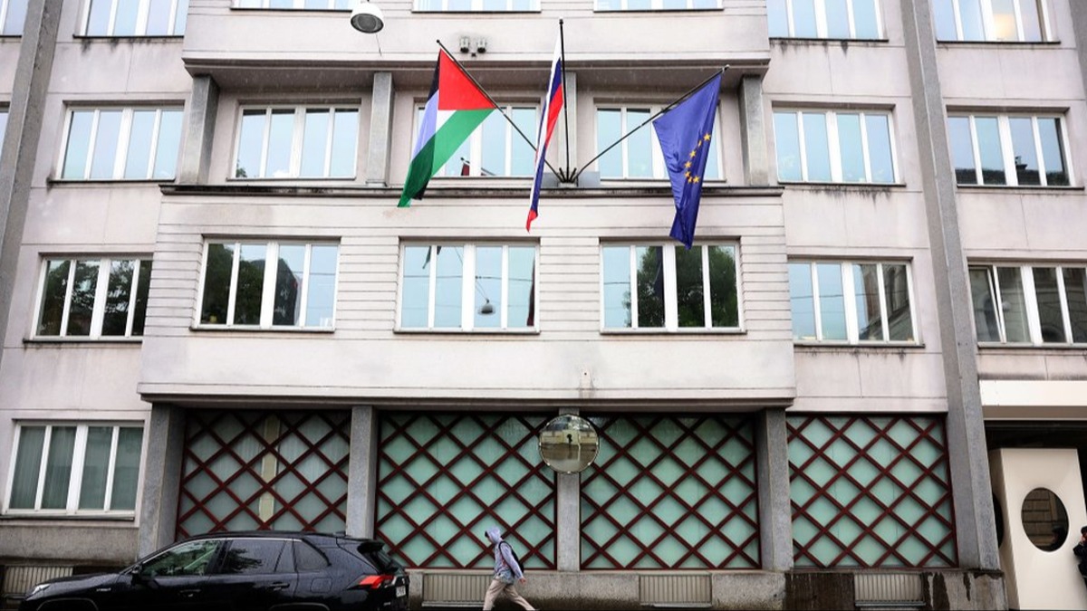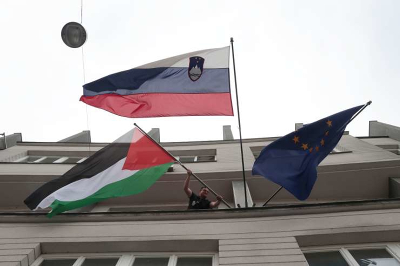 Slovenya hükümetinin, Filistin Devleti'ni tanıma kararı almasından sonra Filistin bayrağı, Avrupa Birliği (AB) ve Slovenya bayraklarının yanına konumlandırıldı.