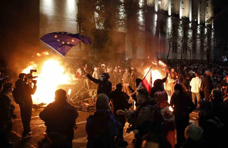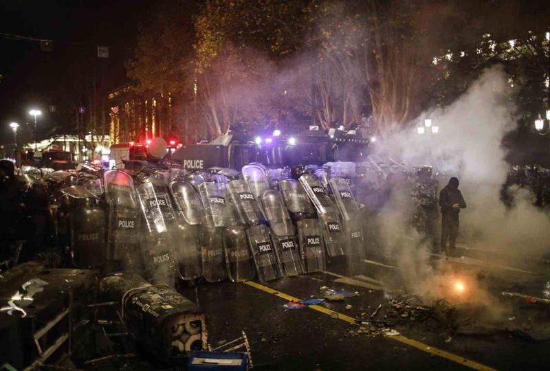 Başbakan Kobakhidze'nin kararı açıklamasından sonra muhalifler, dün gece Tiflis'te gösteriler düzenlemeye başladı.