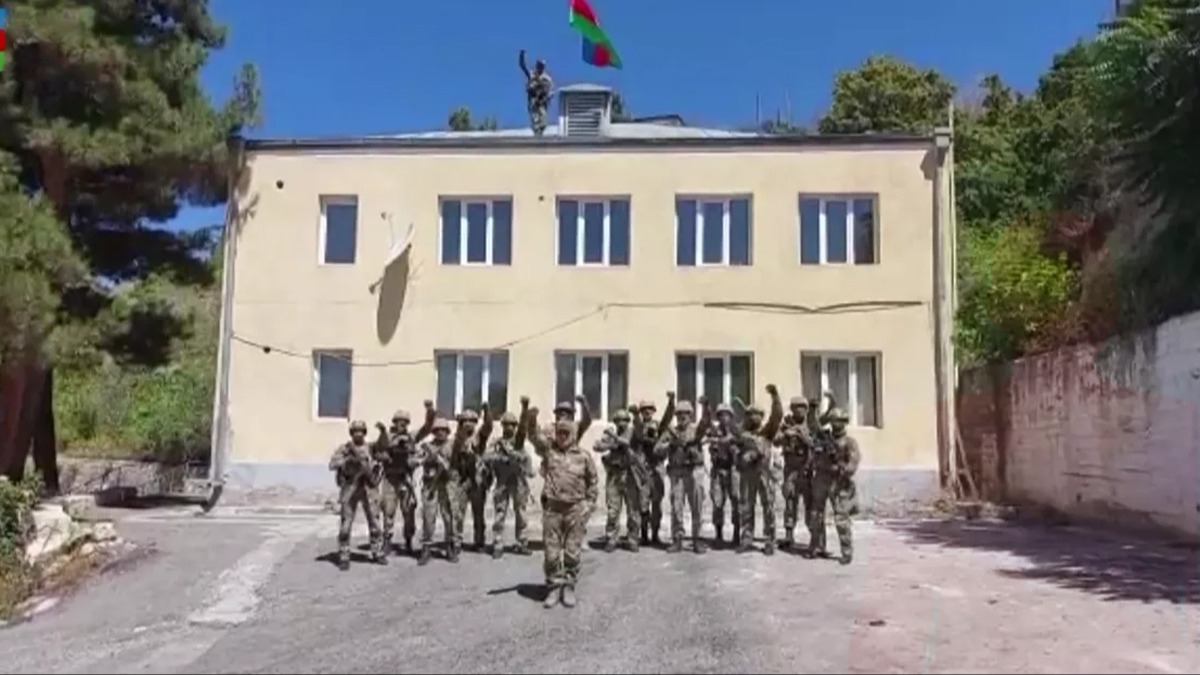 Azerbaycan ordusu, tam kontrol sağladığı Laçın şehrinin merkezine bayrak dikti.