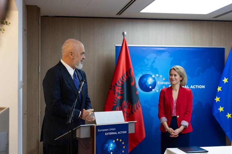 Anlaşma Brüksel'de, Arnavutluk Avrupa ve Dışişleri Bakanı İgli Hasani, Arnavutluk Savunma Bakanı Pirro Vengu ve AB Dış İlişkiler ve Güvenlik Politikası Yüksek Temsilcisi Kaja Kallas tarafından imzalandı.