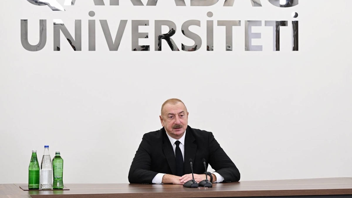 Karabağ Üniversitesinin açılışını yapan Aliyev, üniversite yöneticileri ve öğrencilerle bir araya geldi.