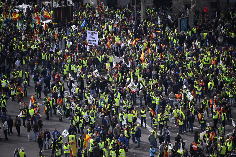Yaklaşık 600 traktörün sadece 50'sinin kent merkezine girişine izin verilirken, traktörleriyle kent dışarıda kalan çiftçiler, Madrid'in çevre yollarını trafiğe kapattı.