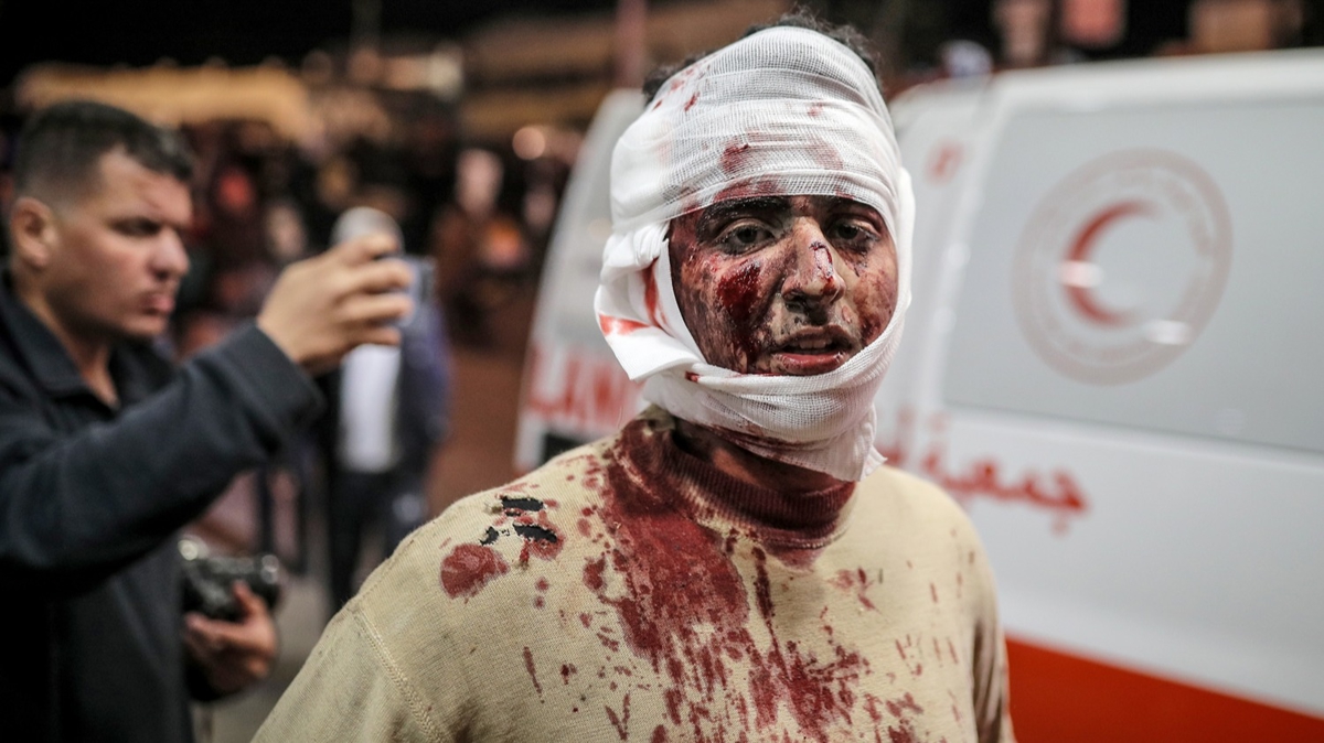 İsrail askerleri, hastaneye sığınan yerinden edilmiş siviller ile sağlık personelini yarı çıplak bir şekilde büyük bir çukurda toplayarak üzerlerine saldırı köpekleri saldı. İsrail'e ait iş makineleri, hastanenin oksijen ünitesini, su deposunu, merkez arşivini ve eczanesini yıktı.