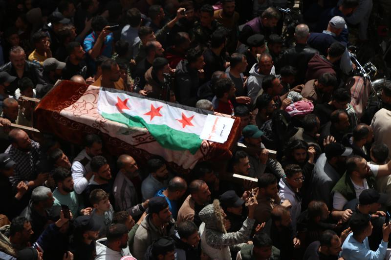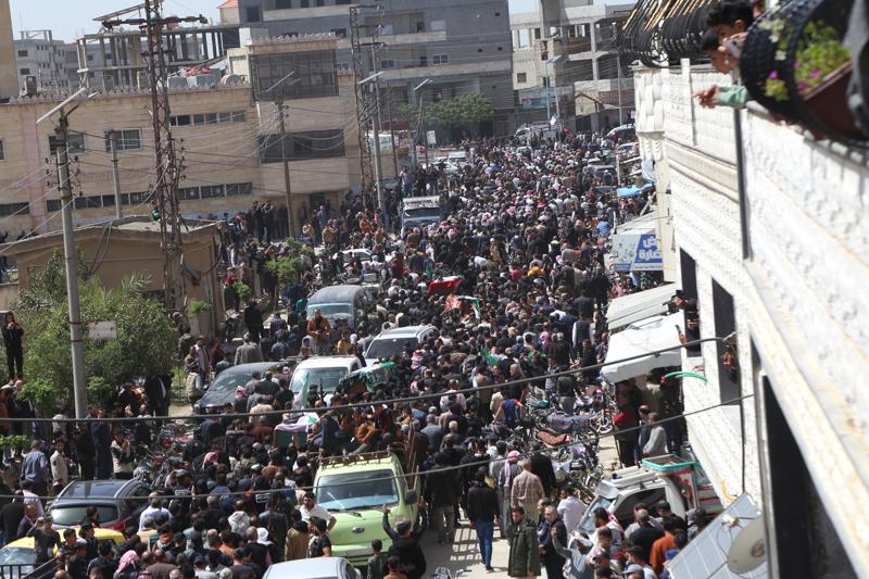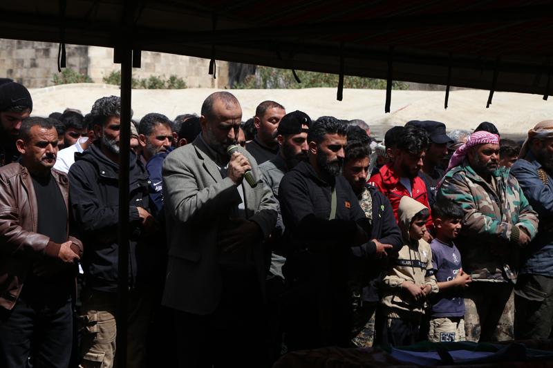 Dera'nın batısında Neva köyünde dün akşam saatlerinde İsrail saldırılarında hayatını kaybeden 9 sivilin cenazesi için tören düzenlendi.