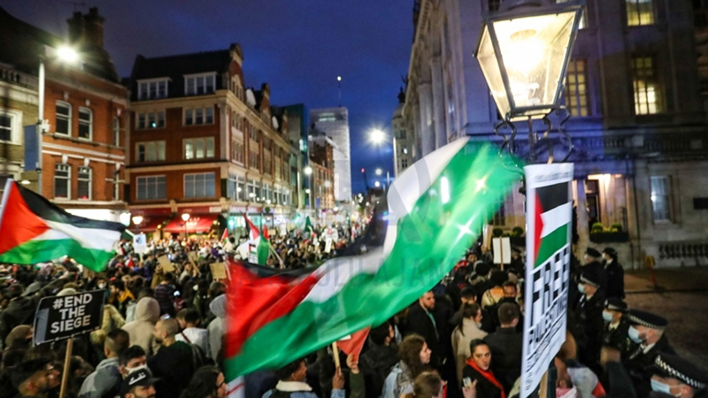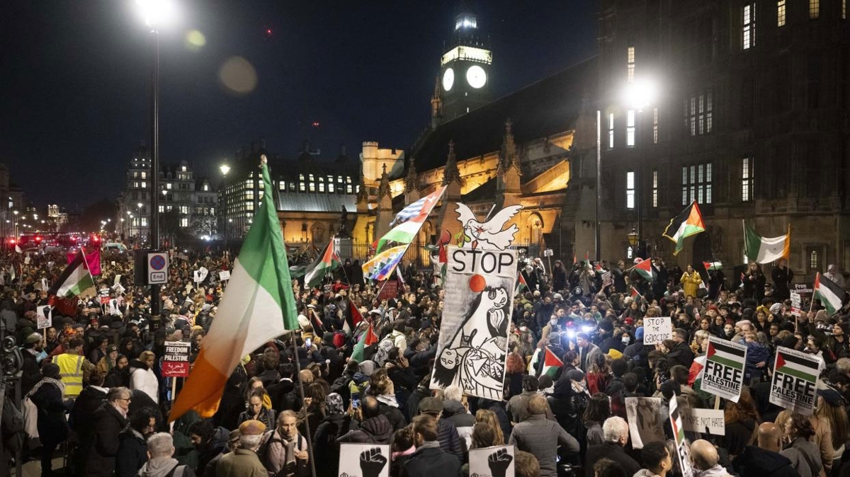 Protestoculara seslenen Filistin'in İngiltere'deki Misyonunun Başkanı Büyükelçi Hüsam Zomlot, İsrail'in Hamas'a değil Filistinlilere karşı savaşta olduğunu belirterek, "Birinci günden beri bunun soykırımın bir bahanesi olduğu uyarısını yaptık. Birinci günden beri Filistinlileri yok etme girişimi olduğu uyarısını yaptık. Son 120 günde, televizyonlarınızdan soykırımı canlı olarak izlediniz." diye konuştu.