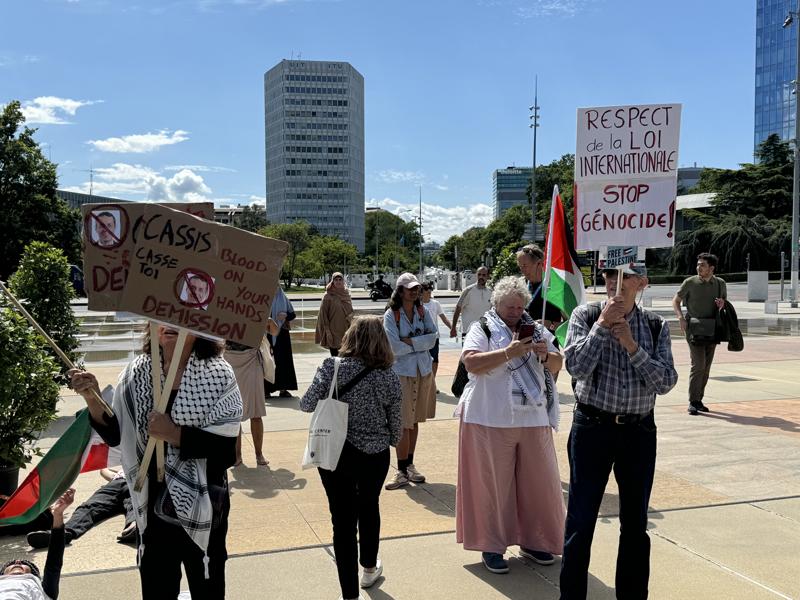 Ellerinde Filistin bayrakları bulunan göstericiler, Cassis ve İsviçre hükümetine, Gazze'de saldırılarını sürdüren "İsrail'i destekleyen tutum sergilediği" gerekçesiyle tepki göstererek, yaşananlardan onların da sorumlu olduğu eleştirisinde bulundu.