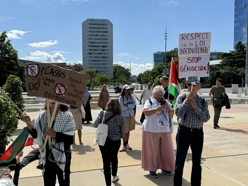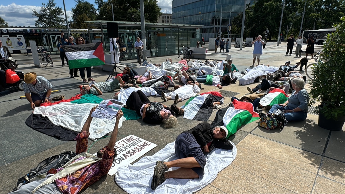 Ellerinde Filistin bayrakları bulunan göstericiler, Cassis ve İsviçre hükümetine, Gazze'de saldırılarını sürdüren "İsrail'i destekleyen tutum sergilediği" gerekçesiyle tepki göstererek, yaşananlardan onların da sorumlu olduğu eleştirisinde bulundu.