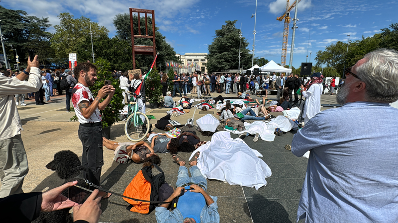 Eyleme katılmak için Neuchatel kantonundan gelen İsviçreli Francoise, "Tamamen hiçbir şeye yaramayan Cenevre Sözleşmelerini protesto etmek için buradayım. Bu Filistin için artık hiçbir anlam ifade etmiyor. Sözleşmeler diğer ülkeler için bir anlamı olabilir ancak Filistin için Cenevre Sözleşmeleri yok." ifadelerini kullandı.