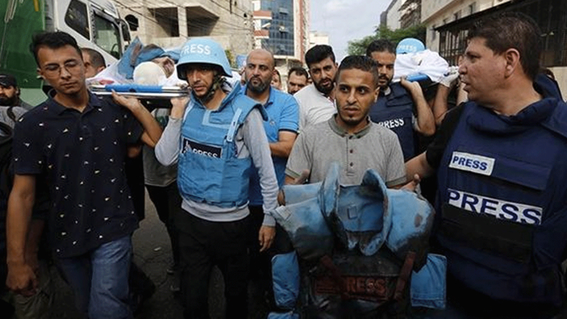 Filistinli Gazeteciler Sendikası Başkanı Nasır Ebu Bekir, 7 Ekim'den bu yana 70'ten fazla basın mensubunun hayatını kaybettiği Gazze'de, İsrail'in, gazetecileri susturmak istediğini belirtti.