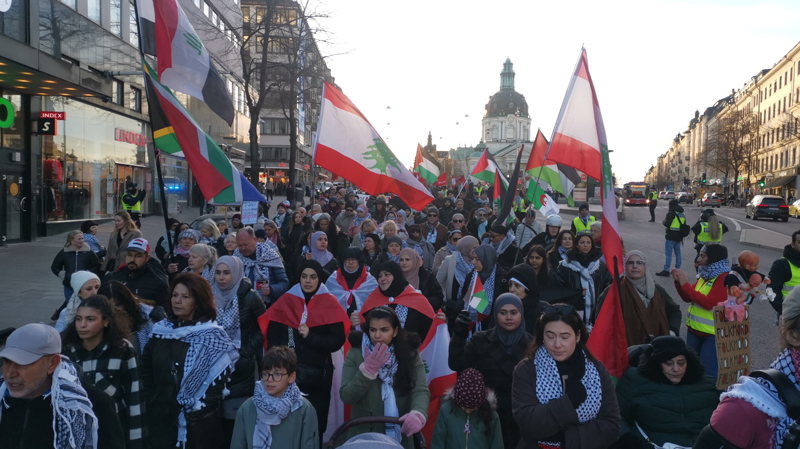 Eylemciler, İsrail'in saldırılarına destek verdiği için İsveç ve ABD'yi de kınadı.
