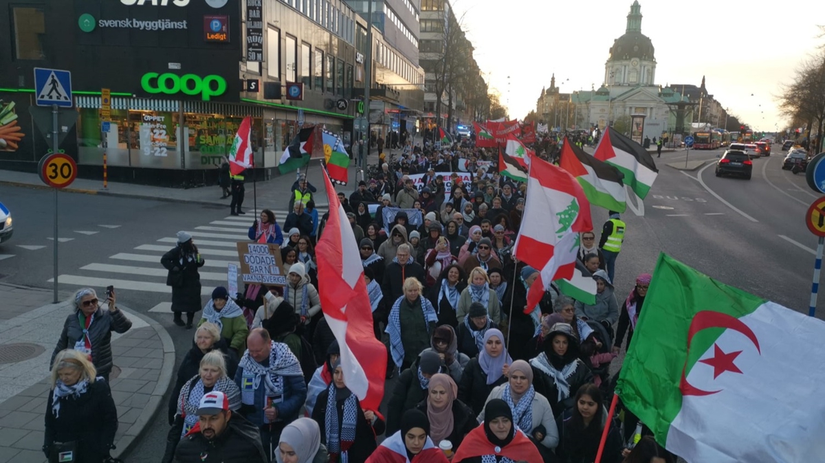 Odenplan bölgesinde toplanan göstericiler, İsveç Parlamentosu'na doğru yürüyüşe geçti.