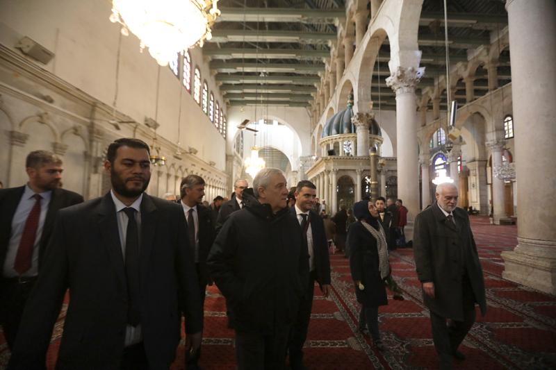Bakan Tajani, beraberindeki heyetle Şam'daki Emevi Camisi'ne ziyaret gerçekleştirdi.