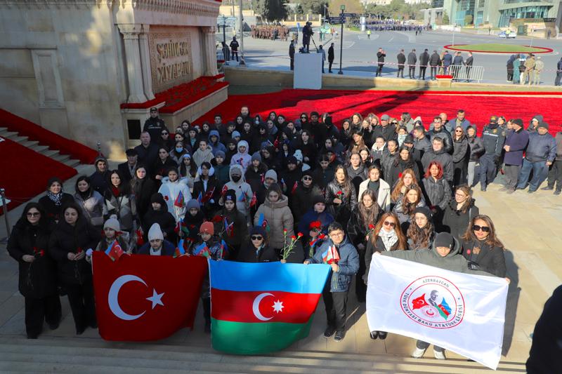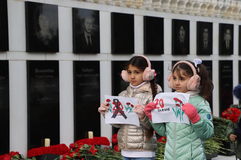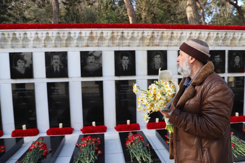 Azerbaycanlılar, 1990'da yaşanan katliamda hayatını kaybedenleri anmak için Bakü Şehitler Hıyabanı'na akın etti. Şehitlik önünde uzun kuyruklar oluşurken, mezarlara kırmızı karanfiller bırakıldı, şehitler için dua edildi.