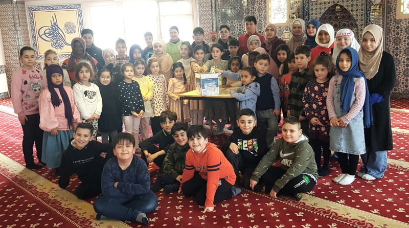 Kurs öğrencileri topladıkları parayı DİTİB ile Türk Diyanet Vakfı işbirliğiyle başlatılan "İyilik Konutları" kampanyasına gönderilmek üzere caminin din görevlisi Seyfettin Erkan'a teslim etti.