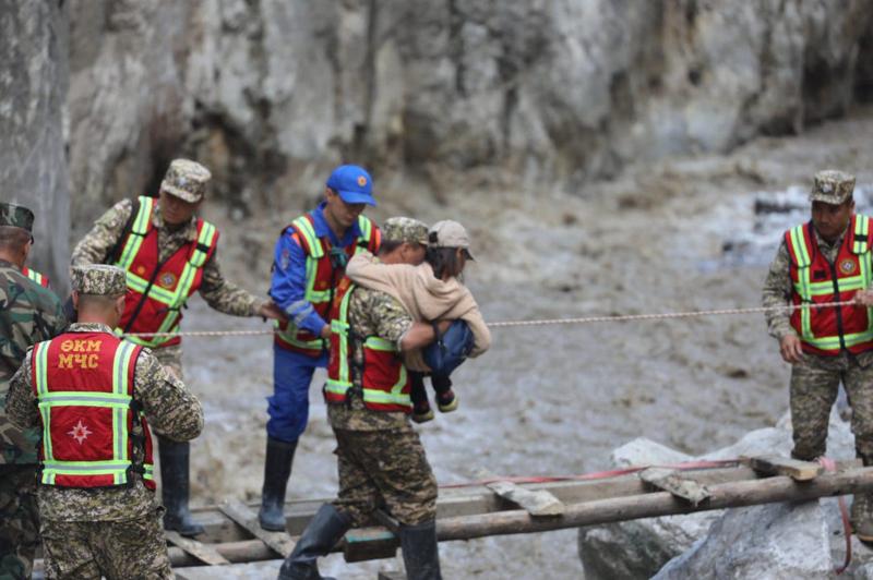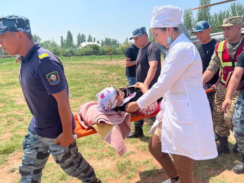 Nookat ilçesinin Abşır Ata köyündeki bir tatil yerinde sel nedeniyle mahsur kalan yüzlerce kişi arama kurtarma ekiplerince helikopter ve diğer araçlarla güvenli yerlere tahliye edildi.