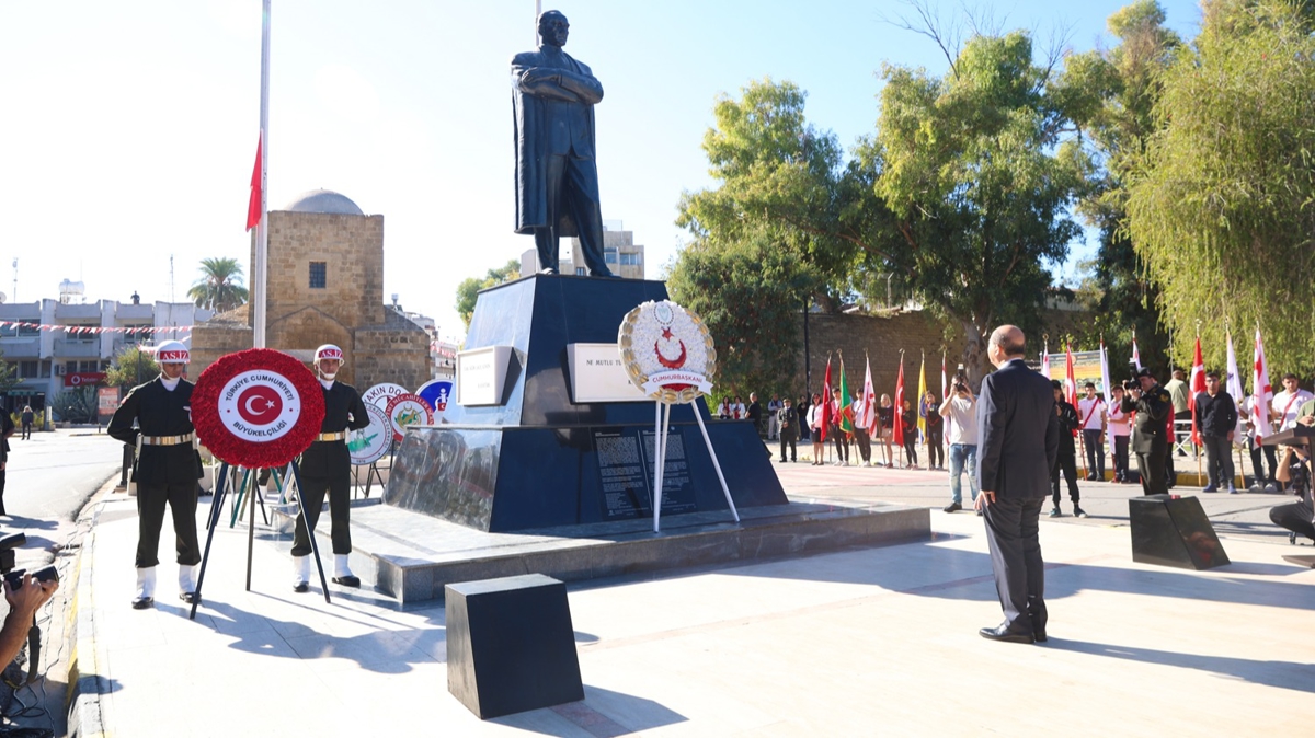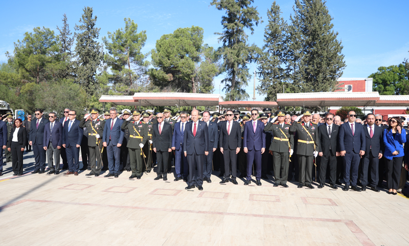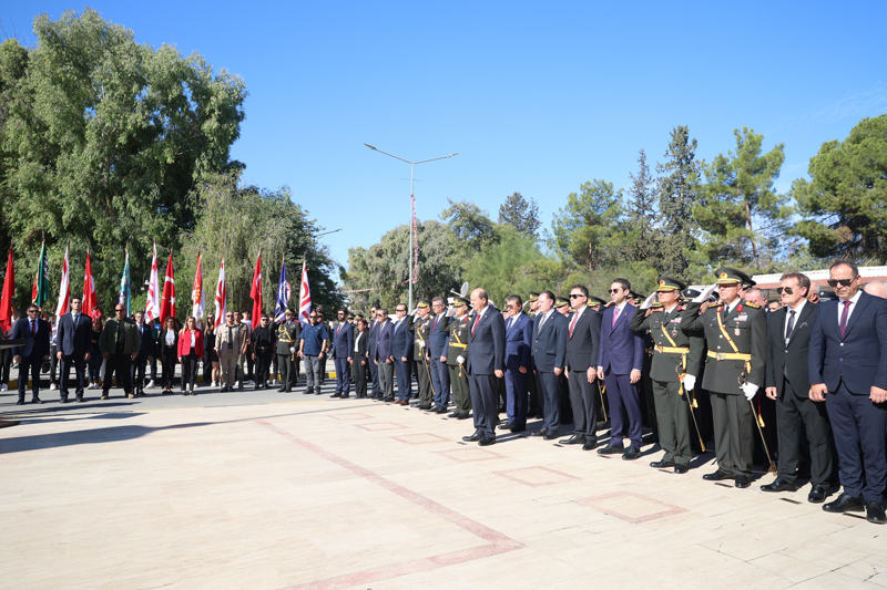 Tören, saat 09.30'da protokol sırasına göre anıta çelenklerin sunulması ile başladı. Saygı duruşu ve İstiklal Marşı eşliğinde bayrakların göndere çekilmesinin ardından anıt özel defteri Cumhurbaşkanı Ersin Tatar ve Türkiye'nin Lefkoşa Büyükelçisi Yasin Ekrem Serim tarafından imzalandı.