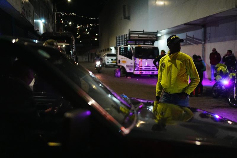 Bogota'nın en yüksek kentsel şiddet oranlarına sahip gecekondu mahallelerinden biri olan Ciudad Bolivar'da polis ekipleri, kontrol noktalarında vatandaşları denetleyerek güvenliği sağlamaya çalışıyor.