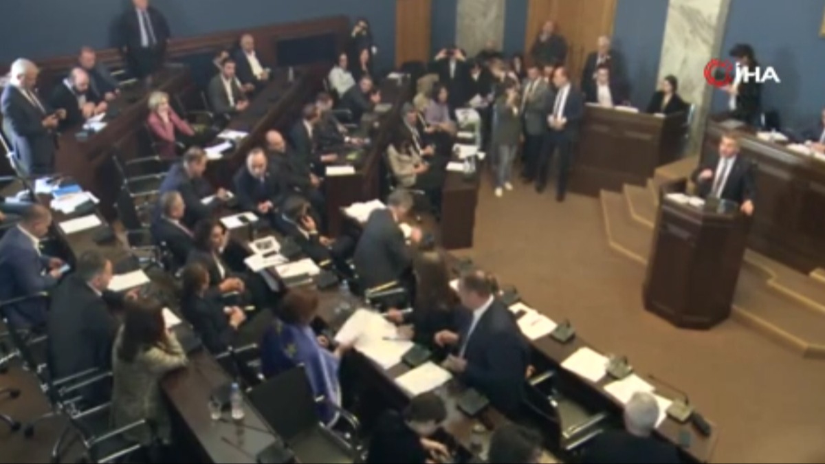 Gürcistan'da geçtiğimiz yıl ülke çapında tepkilere yol açan "Yabancı Etkinin Şeffaflığı" yasa tasarısının yeniden parlamentoya sunulması ortalığı karıştırdı. Yasa tasarısını sunan iktidardaki Gürcü Hayali Partisi'nin parlamento çoğunluğu lideri Mamuka Mdinaradze, tasarı hakkında konuşma yaptığı sırada muhalefetteki Vatandaşlar Partisi Milletvekili Aleko Elisaşvili tarafından saldırıya uğradı. Yasanın Rusya'yla bağlantısı olmadığını savunan Mdinaradze'ye hakaret ederek yaklaşan Elisaşvili sözlü saldırısına yumrukla devam etti. Elisaşvili'nin yumruklu saldırısının ardından iktidar ve muhalefetteki milletvekilleri de birbirine girerken, yumruklar havada uçuştu. Bazı milletvekillerinin hafif yaralandığı olayda, Hukuk Komitesi'ndeki görüşmelere kısa bir ara verildi.